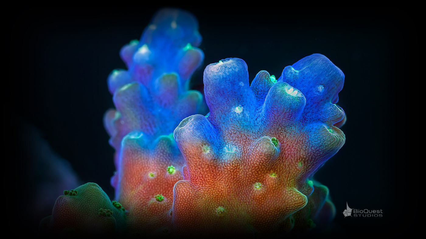 Marine life is full of patterns and features invisible to the naked eye. The ability to capture detailed high-resolution close-ups of common reef animals requires a broad array of skills and knowledge in multiple areas. BioQuest Studios applies similar techniques for both video and still images.